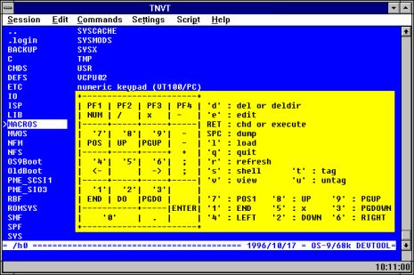 Random read of physical disk sectors (not LSN), Convert julian time value to "hour:min:sec" string, Print "hour:min:sec" string, Convert julian date value to "year/month/day" string, Print "year/month/day" string, Print weekday string ("Sun" ... "Sat"), Read system time and convert to julian time format, Read system date and convert to julian date format, Read system date and time and return as "Y/M/D H:M:S" string, Print system date and time as "Y/M/D H:M:S", Open a module and fix OS-9 module CRC value, Open a file of modules and fix module CRC value, Open a file and check module CRC value, Open a file of modules and test module CRC value, Open a file and fix module header parity check value, Fix parity check value on header in buffer, Compute OS-9 module header parity check value, Perform a hex and ascii dump similar to DUMP utility, Control paging, similar to '$ tmode pause', Search process table for module name and return pid, Extract command line option string, Copy data from one path to another, Iniz a RBF device, initialize the drive table, Detect RBF FILETRANSFER AND REMOTE LOGIN Communication software controls the modem connected to the computer and directs data to and from the modem. For most cases in the PC environment, the modem is used in an asynchronous mode and the software controls the modem by the AT command set. Modems support the extended AT command set and are compatible with most communication software. However, there are some unique features in the modem and there are some unique commands to control them. Some communication software need a "modem data file" to tell it what commands and features the modem supports. REMOTE allows the configuration via commandline arguments. This is convenient because no additional support files or databases are required for operation. This makes installation very simple and the whole system keeps ROMABLE without RBF. HOW REMOTE WORKS REMOTE is an utility that allows you to remote control a 680x0 based computer via telephone line. REMOTE allows to send/receive binary and files from a remote host. No human interaction is required on the remote OS-9 side. REMOTE performs the data transfer via serial link and serves as man-machine interface on the OS-9 side. The software provides ZModem up-/download capabilities as well as complete access to the host via OS-9 shell. Please click here for futher information or demoversions The software is available as The information contained in this product information sheet is believed to be accurate as of the date of publication. The information and the software described herein is subject to change without notice. OS-9 and OS-9/68000 are trademarks of Radisys. This product information sheet reflects devTOOL software. Copyright (c) 1992-2016 DTR Datentechnik Reischke. All rights reserved.