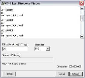OS9MAX64 finds automatically all lost OS-9 files and directories